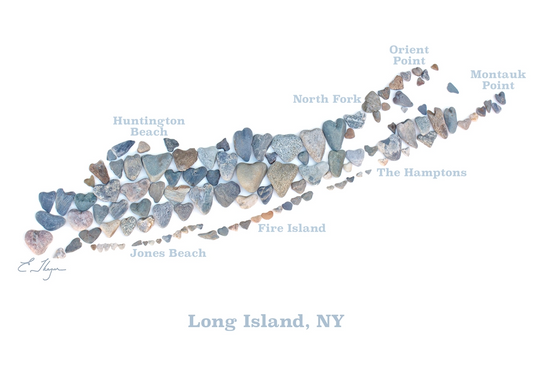 Long Island, NY - Heart Shaped Beach Rocks Print