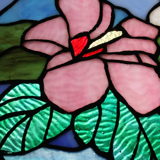 Jamie Blue Tropical Hibiscus Stained Glass Window Pane - 12-in