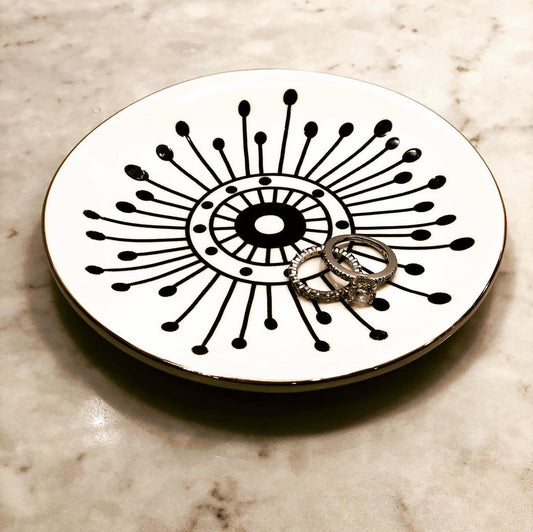 Round Stoneware Plate - Black Pattern with Gold Electroplating - 5-in