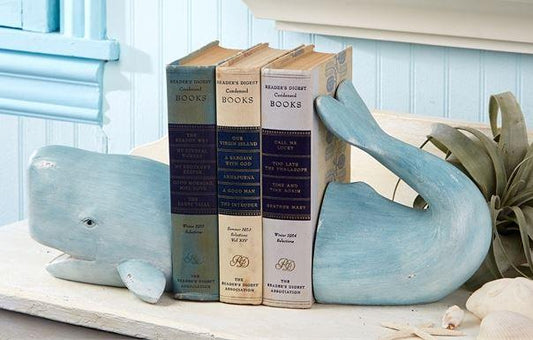 Whale Tale Bookend Set with Distressed Finish - 10-in