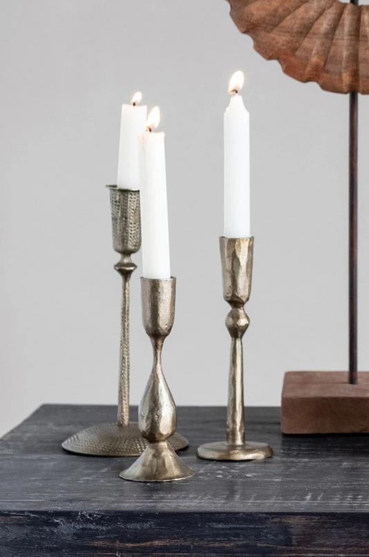 Hand-Forged Hammered Metal Taper Holder - Antique Brass Finish - 8-3/4-in