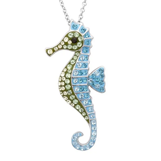 Sterling Silver Whale Tail Necklace with Ombre Blue Crystals