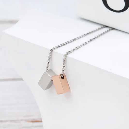 I Love You Mom - Double Cube Necklace - Silver & Rose Gold