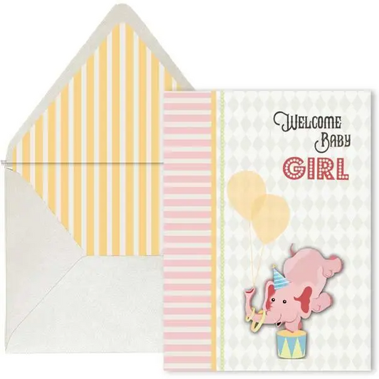 Welcome Baby Girl - Vintage Circus - New Baby Greeting Card