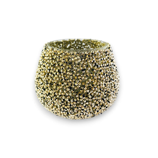 Recycled Glass Beaded Votive Holder - Antique Gold - 3-1/2-in