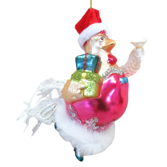 Mr. Chicken With Gifts - December Diamonds Holiday Ornament