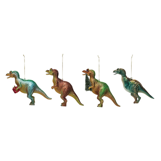 Glass & Resin Festive Dinosaur Ornament - 5-1/2-in