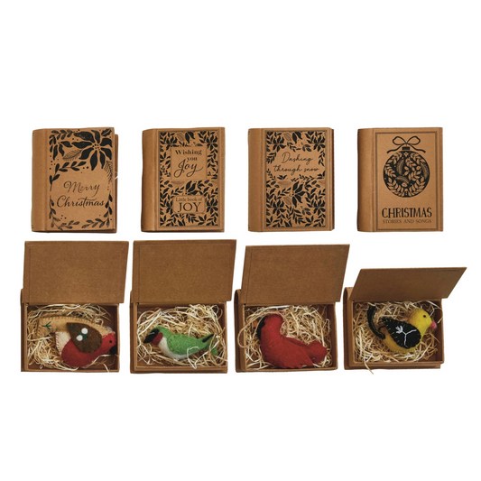 Wool Felt Bird Ornament in Kraft Book Box - 3-3/4-in