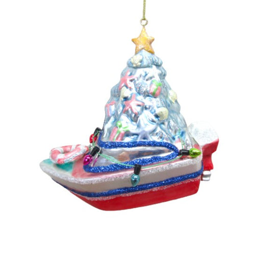 Pink Boat with Christmas Tree - December Diamonds Holiday Ornament