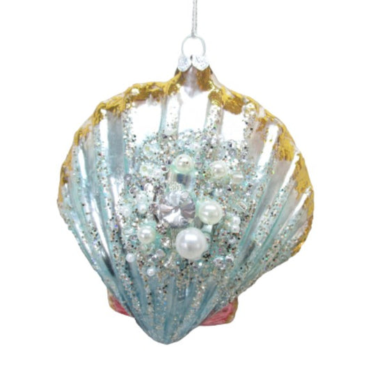 Seafoam and Gold Scallop Shell - December Diamonds Holiday Ornament