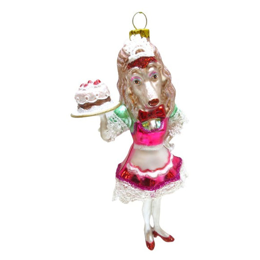 Ms. Dog Waitress with Cake - December Diamonds Holiday Ornament