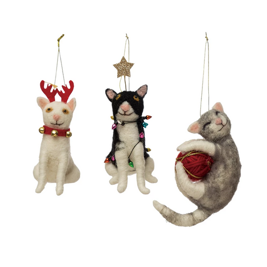 Festive Wool Felt Cat Ornament