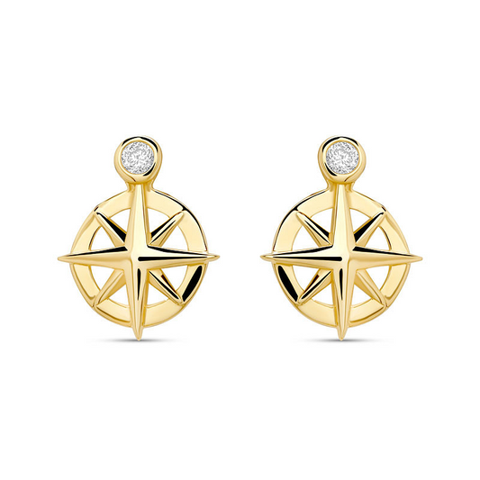14kt Gold Lab Diamond Ships Wheel Earrings - Deep Blue by Ocean Jewelry