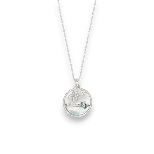 Swimming Turtle In A Palm Beach Scene - Necklace