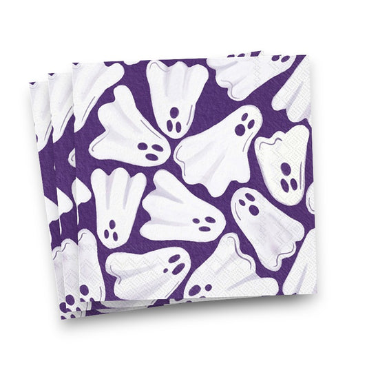 White Ghosts on Blue Paper Cocktail Napkins - 20 Count