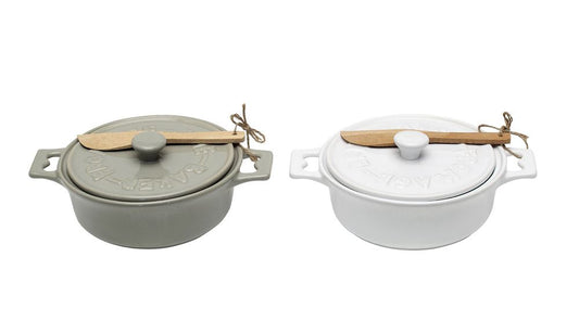 Stoneware Brie Baker with Wood Spreader - 7-in