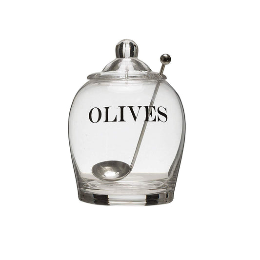 Glass Olive Jar with Lid & Slotted Stainless Steel Spoon