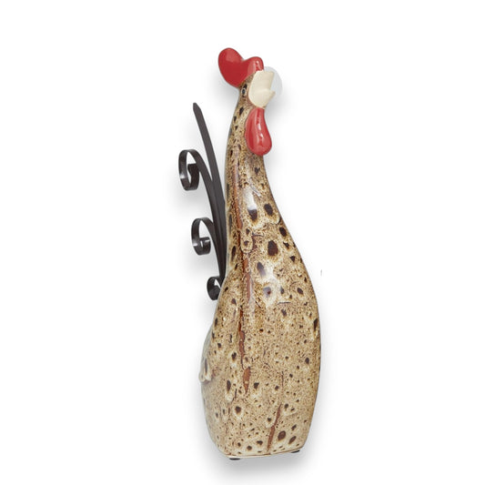 Rooster - Ceramic and Metal Rooster Garden Sculpture - 13-in (Large)