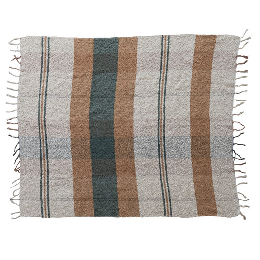 Cotton Striped Throw with Fringe - 60-in
