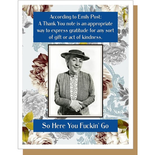 According to Emily Post: A Thank You Note is an Appropriate Way to Express Gratitude for Any Sort of Gift or Act of Kindness - Greeting Card