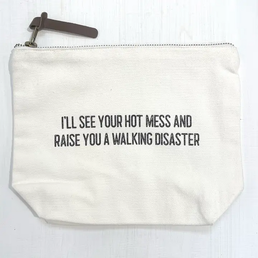 Hot Mess - Cotton Zippered Makeup Pouch Cosmetic Bag - 9-in