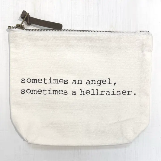 Sometimes An Angel, Sometimes A Hellraiser - Cotton Zippered Makeup Pouch Cosmetic Bag - 9-in