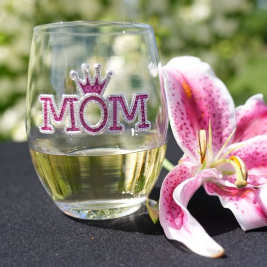 Mom Jeweled Stemless Wine Glass