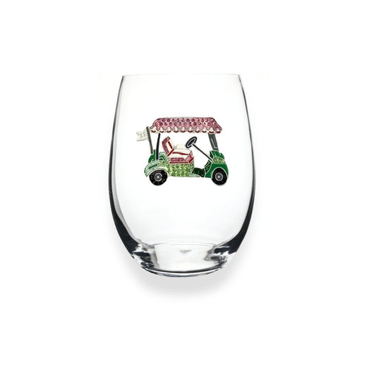 Golf Cart Jeweled Stemless Wine Glass
