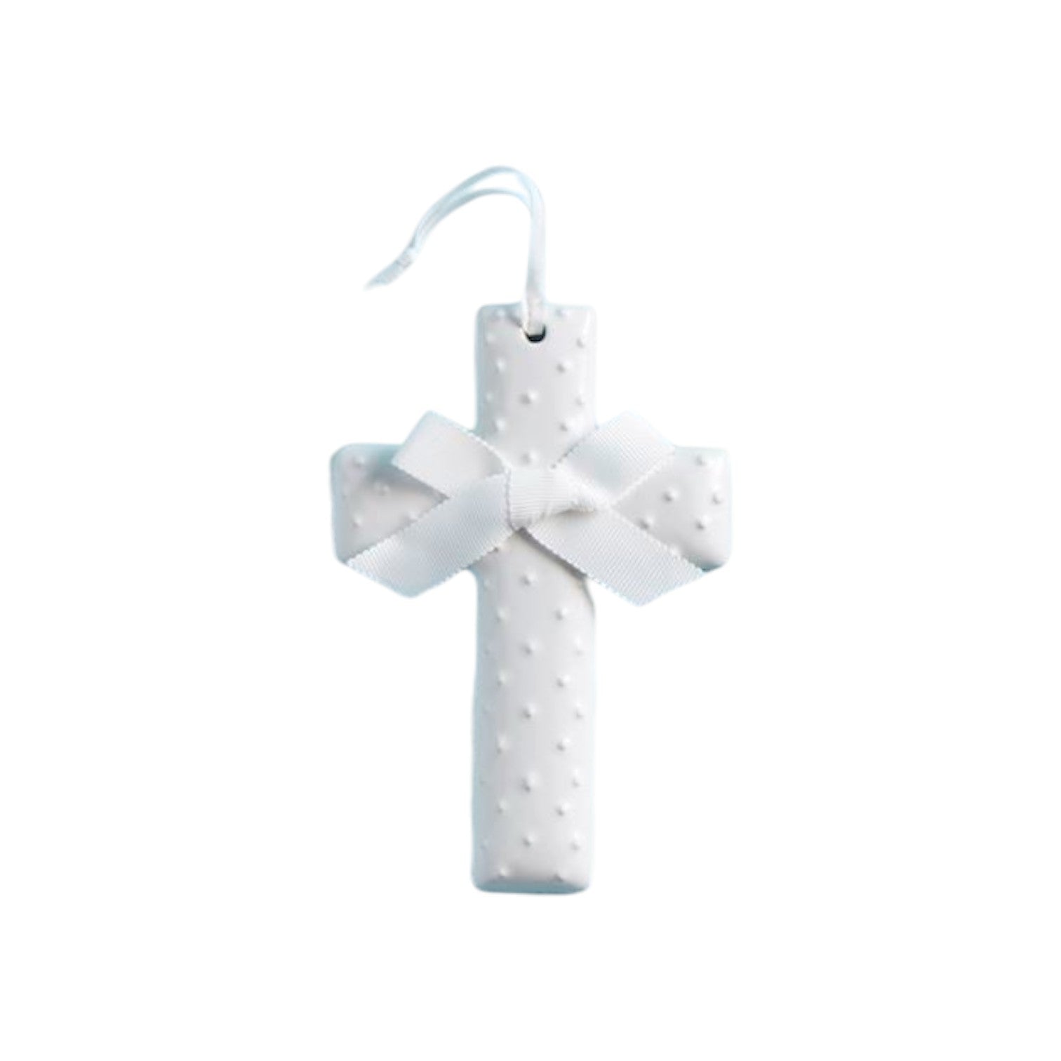 Ceramic Cross with Hat Ribbon Hanger - White