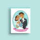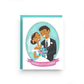 - This beautifully designed card features an illustration of a beaming newlywed couple, captured in a moment of pure happiness.