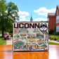 UCONN pride meets everyday function in this beautifully woven zippered pouch. Featuring rich colors and shimmering metallic thread, the college themed artwork brings to life iconic scenes like the UCONN mascot, campus buildings and school locations. Finished with a custom silver star zipper pull and collegiate lining, it’s a university themed keepsake you’ll actually use.