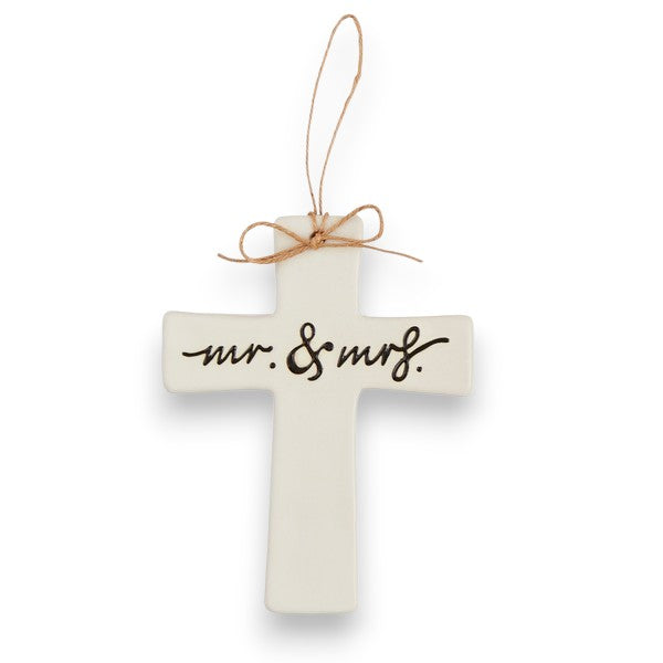 Mr And Mrs Hand Painted Stoneware Wedding Cross