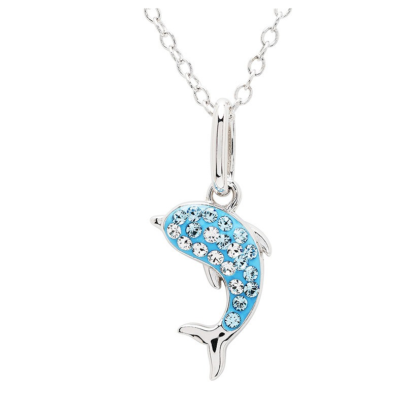 Sterling Silver Aqua Crystal Dolphin Mini Necklace