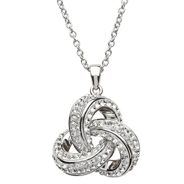 • Brilliant and elegant Trefoil Knot from Shanore Ireland’s Signature 925 Collection features exquisite details and sparkling white crystals.