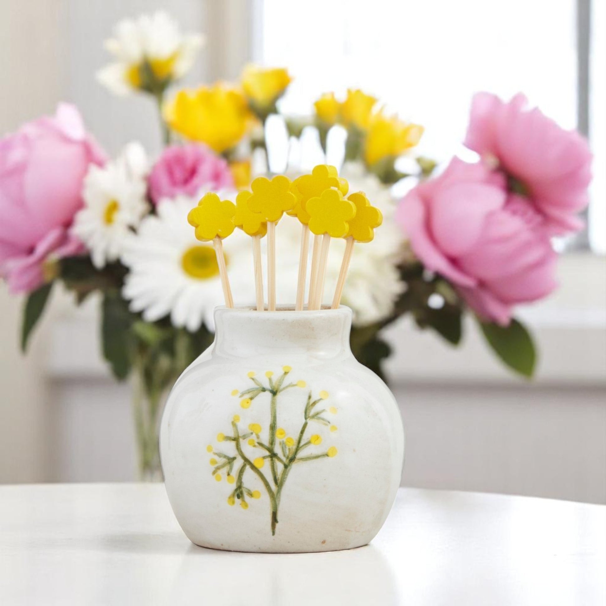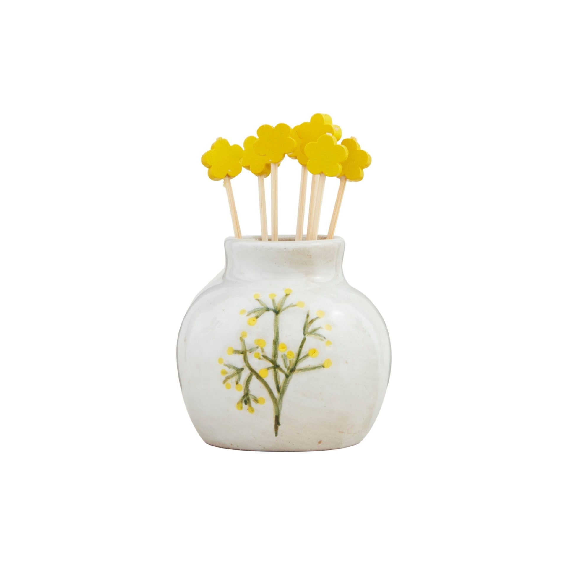 - The Yellow Flower Toothpick Caddy Set is a charming addition to any dining table or kitchen decor.