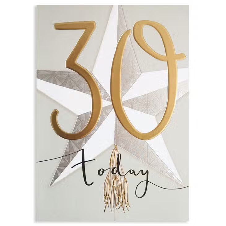 - Gold Foil with Star and Tassel print that reads, "30 today"