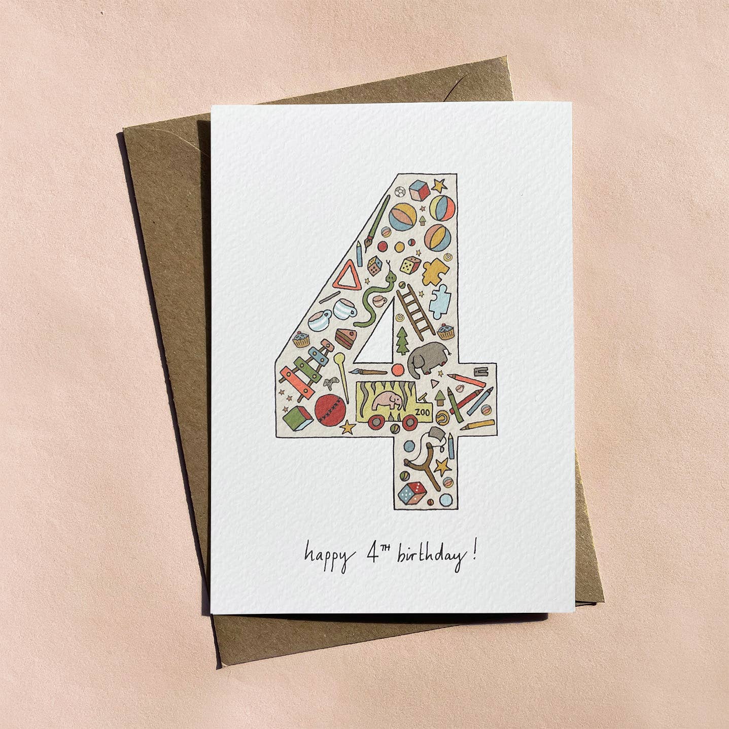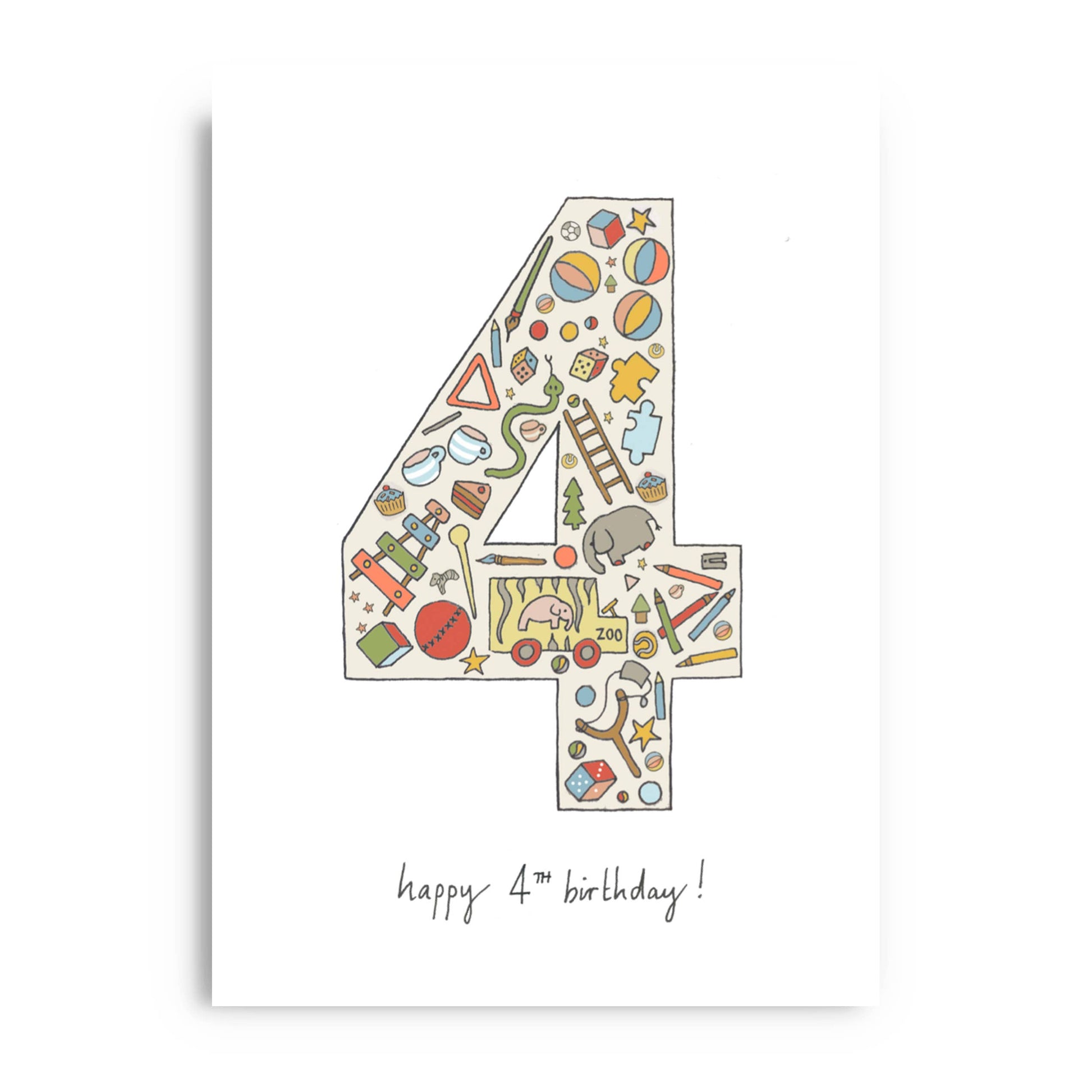- A beautiful, classic birthday card to celebrate turning 4, featuring lots of familiar old toys this vintage style card will take you back!