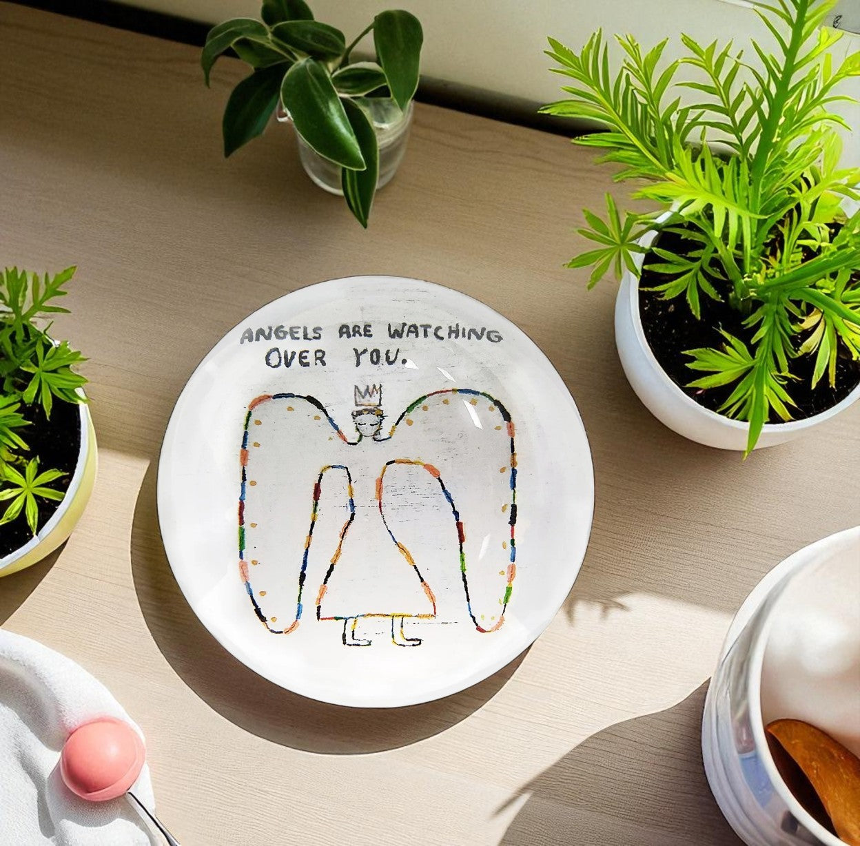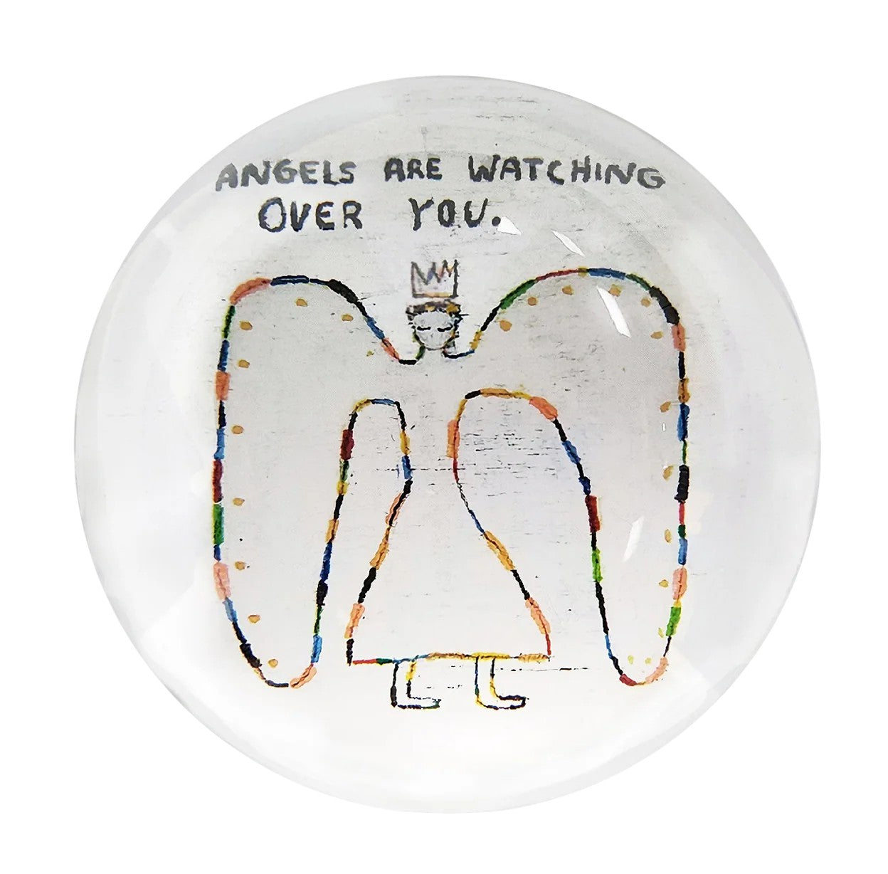 This glass paperweight features an angel set against a clean white background, paired with the reassuring message: "Angels are watching over you." It's a meaningful piece that brings a sense of peace and presence to any space.