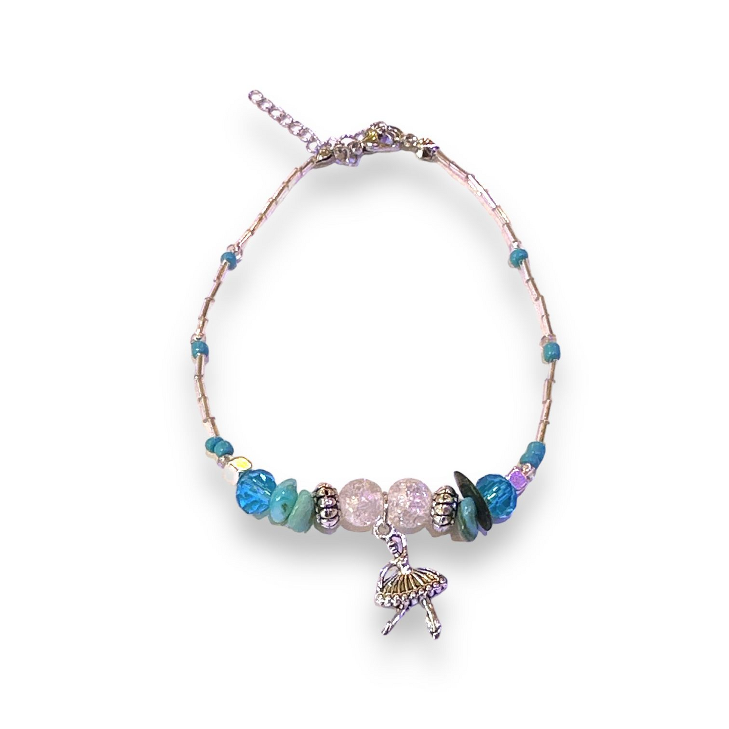 - Adorable silver/turquoise beaded anklet with a ballerina pendant!