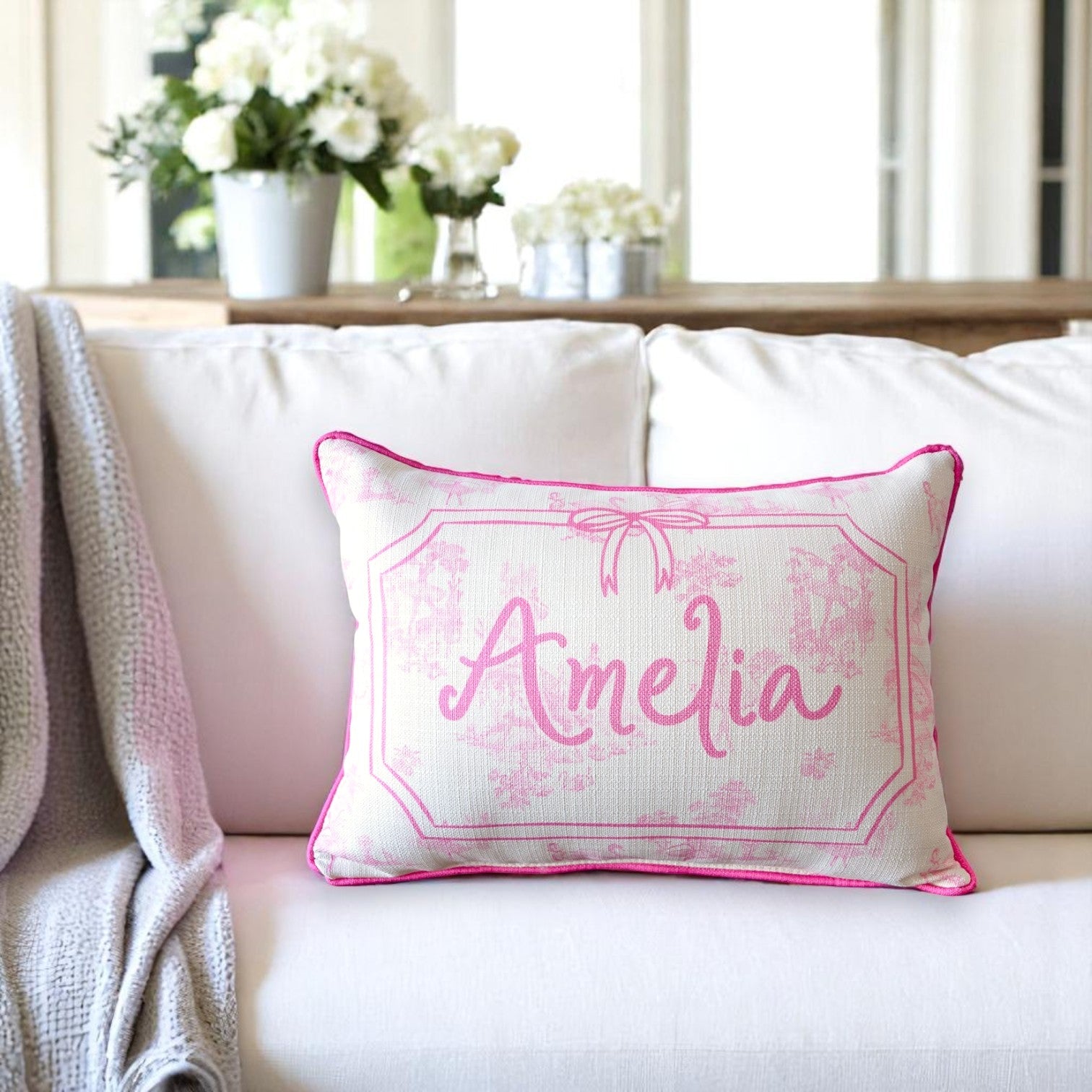 Ballet Toile Personalized Pillow with Light Pink Piping - 19-inch