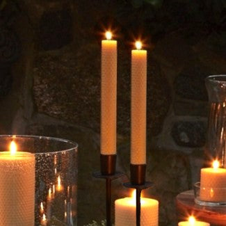 - These Hand Rolled Beeswax Tapers feature a distinctive honeycomb embossed texture. As they burn, the layers of beeswax become translucent creating a soft soothing glow that enhances any space.