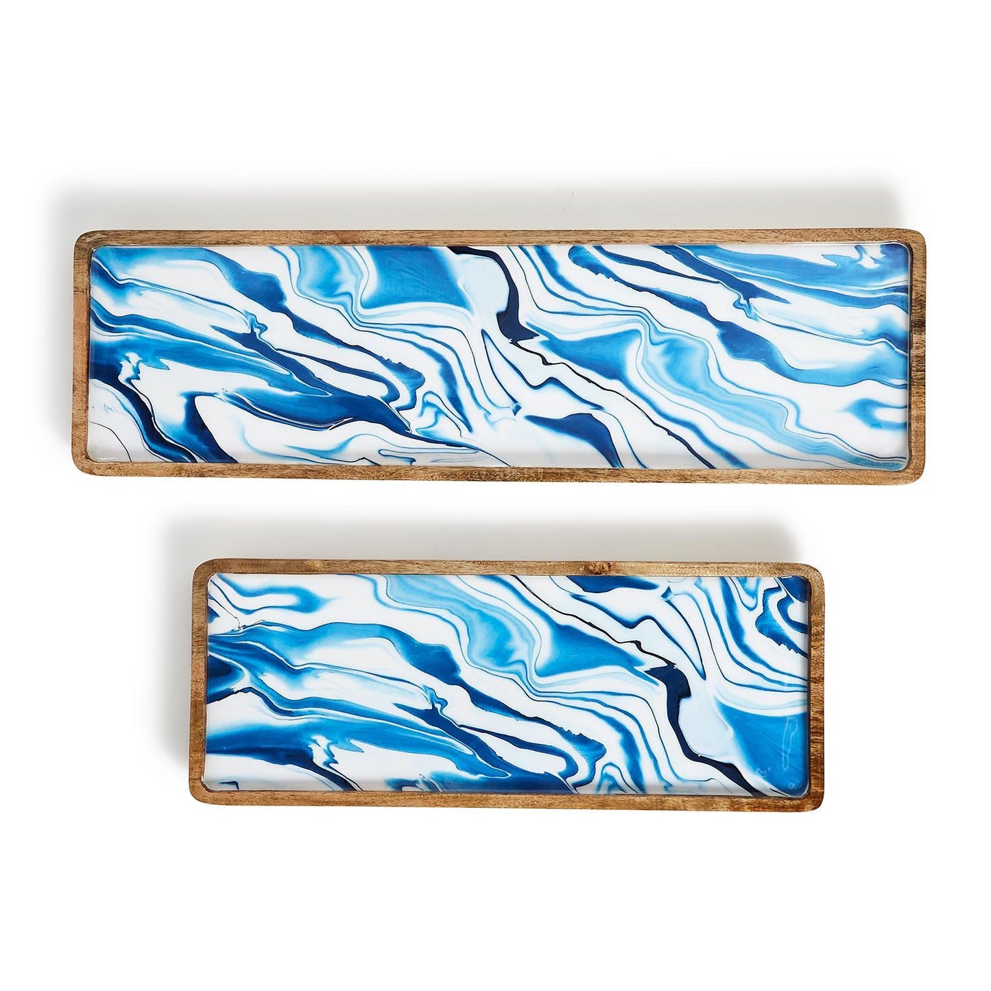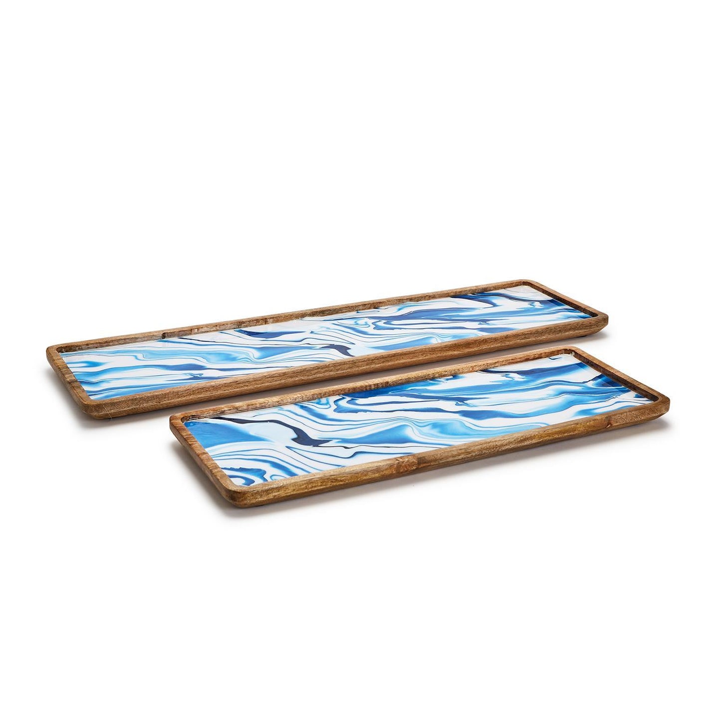 • Bring a touch of elegance to your table with our Blue Aptware Mango Wood Serving Tray, available in two sizes, each sold separately