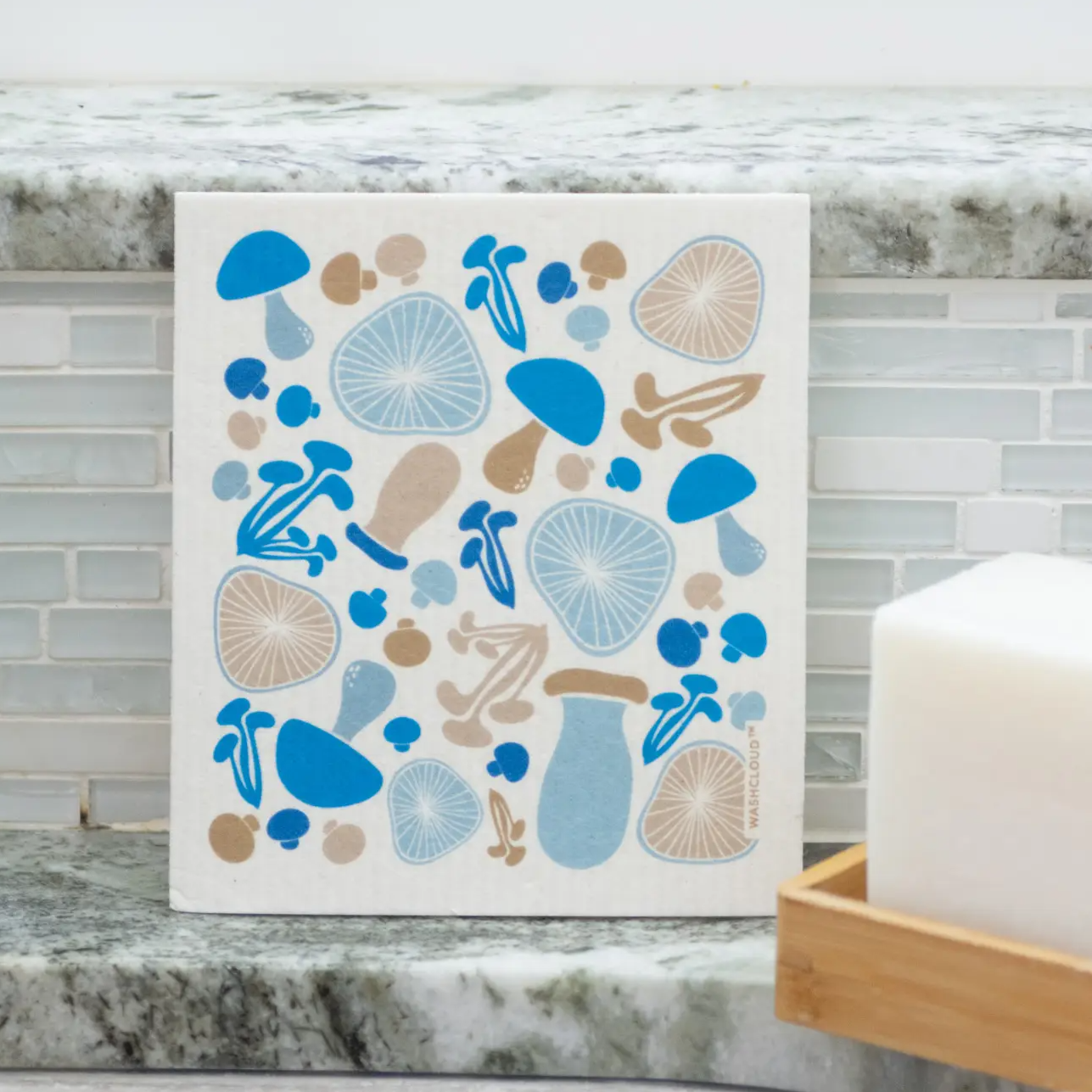 Blue Mushrooms Swedish Dishcloth