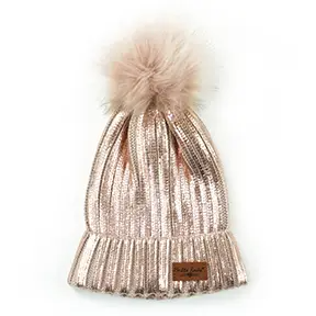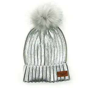 - Glazed with icy metallic printing, this ribbed knit hat features an ultra-plush pom and a cool, relaxed fit.