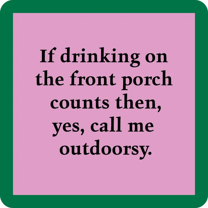 - Reads: "If drinking on the front porch counts then, yes, call me outdoorsy."