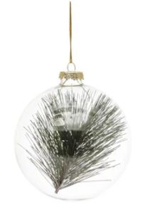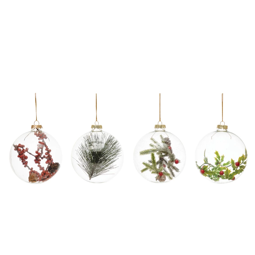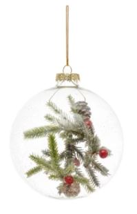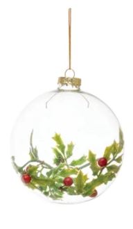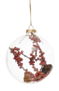 Clear Glass Ball Ornament - Faux Berries & Greenery