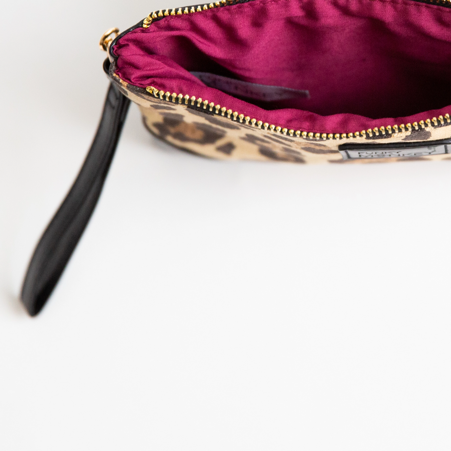 • Wristlet measures 6-in tall x 9-in wide / Wrist strap is 10.5-in loop / Interior measures 5.5-in deep x 8.5-in wide
