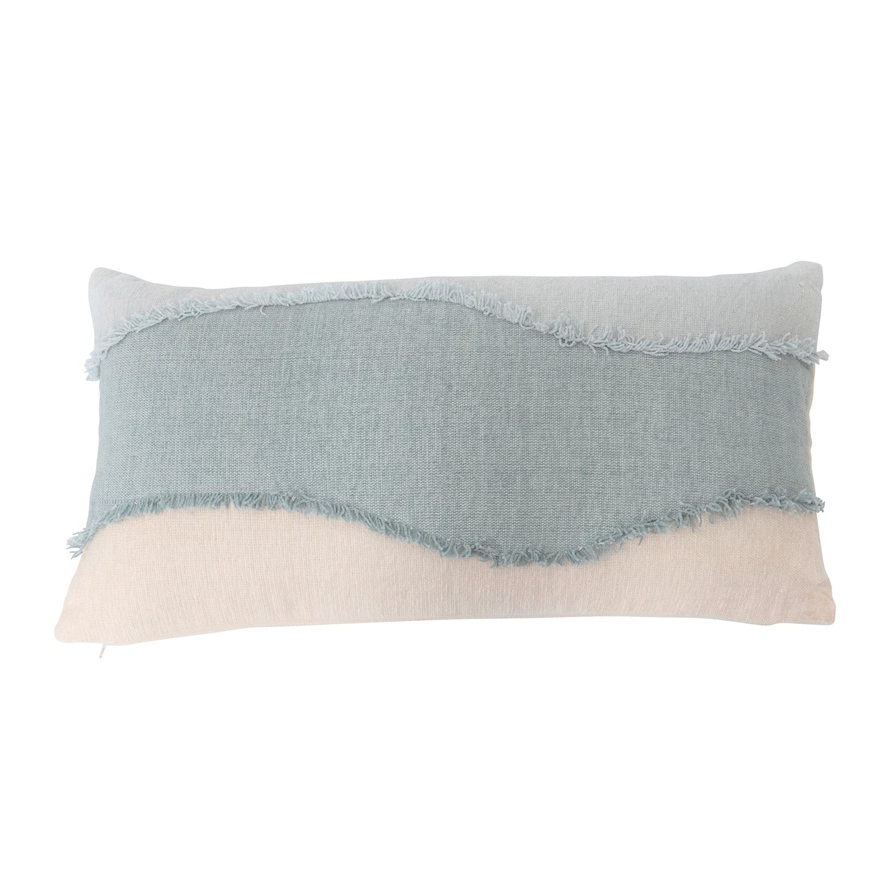 - This seaside-inspired lumbar pillow showcases unique cotton applique construction in a serene, abstract design