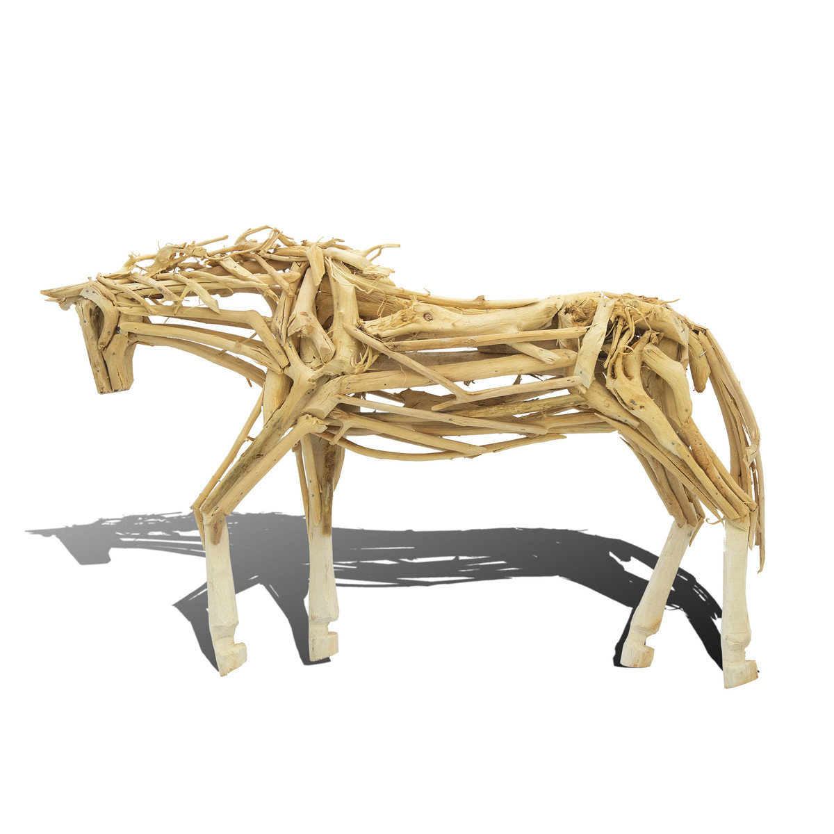 - Each horse is assembled from found driftwood and made into a horse sculpture.