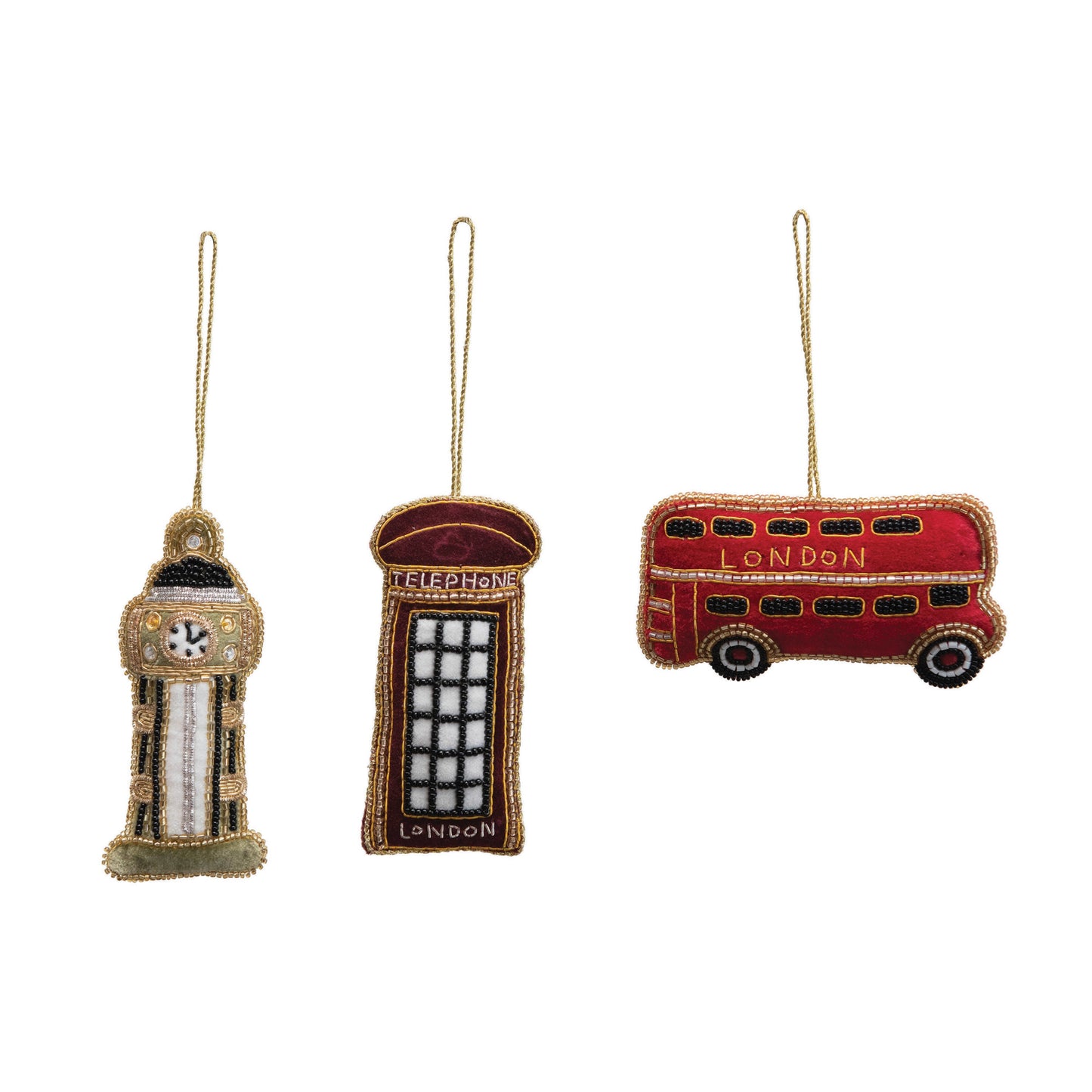 - Charming fabric ornaments in three London iconic styles (each sold separately)